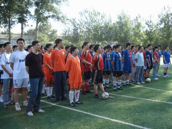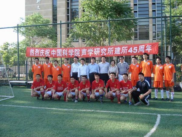 “所庆杯”足球赛得到了声场声信息国家重点实验室的大力赞助。重点室主任郭良浩到场讲话并亲自为比赛开球。本次参赛的队伍共有12支,分成A、B、C三组进行循环赛,每组前两名直接出线,两个成绩好的第三名出线,然后再抽签进行八强淘汰赛。