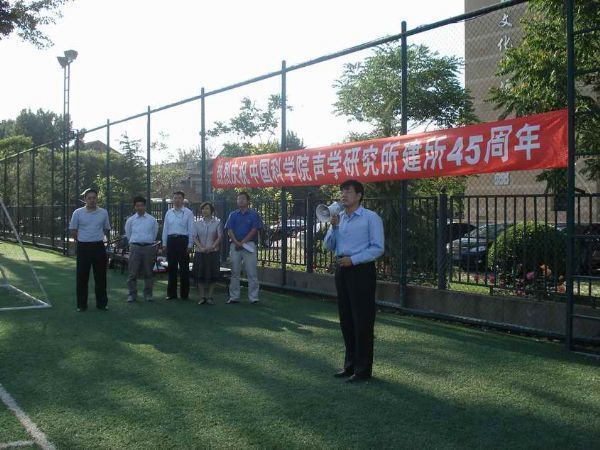 王小民副书记和工会苏媛副主席分别在开幕式上讲话。王小民副书记表示,此次“所庆杯“足球赛是声学所为庆祝建国60周年、建院60周年以及建所45周年举办的系列庆祝和纪念活动之一,希望参赛队员赛出水平,赛出风格,展现声学所人良好的精神风貌,通过比赛,促进和谐声学所建设。苏媛副主席强调,比赛要注意安全,参赛队员们要做到友谊第一,比赛第二。