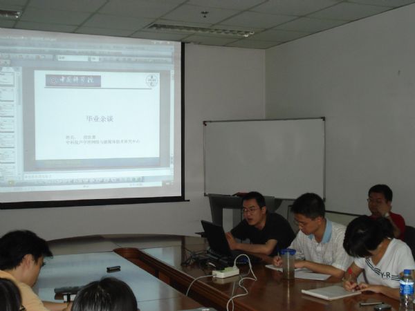 以严谨认真著称的嵇智辉师兄分享了自己在工作中的科研体会,以及如何有条理的撰写毕业论文。嵇师兄强调在繁重的科研生活下千万不要忘记身体健康,再大的压力下要有平常心,身体是革命的本钱!此外,吴丽彬,肖琳,朱小勇,白鹤等师兄师姐都发表了自己的看法和体会,鼓励学弟学妹们平视要注重多和导师以及他人沟通
