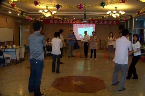 2009年6月9日,在这临别的日子,在人教处的大力支持下,所研究生会在DSP楼多功能厅为即将毕业的同学们举办了一场隆重而热烈的毕业生欢送座谈会。大家济济一堂,畅谈一起共度的难忘岁月,畅想未来新的生活,带着满怀的希望,带着美好的憧憬,在精彩纷呈的节目和趣味横生的游戏中,度过了一个美好而难忘的下午。