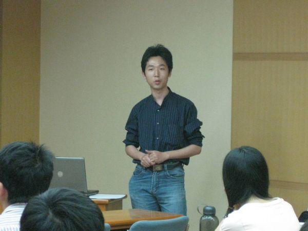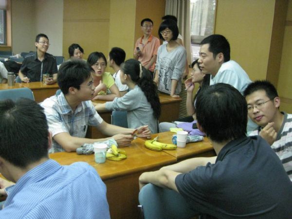 最后出场的是,噪声与振动重点实验室理学博士、“三好学生”(2006年、2008年),“三好学生标兵”、全国青年声学会议优秀论文奖(2007年),中国科学院优秀博士生“朱李月华”冠名奖(2008年)获得者,郑成师师兄,他从“如何解决‘工程’与‘研究’的矛盾?”和“如何带着问题学习?”两个方面进行论述,结合自身科研的体会和成果,为大家上了一堂“语音增强”方向的精彩课堂。首先,由于“工程=实现”、“工程=机械模仿”、“工程=应付项目”、“工程=做完了事”等思想的作怪,所以“做‘工程’人写论文难”。师兄提出自己的见解:不论声学,还是信号处理,都属于应用研究;应用研究,顾名思义,就是要在“应用”中,发现问题,然后进行“研究”。通过自身对“相关函数估计”改进的例子,说明只要用心思考,各个领域都会有我们的一份空间的。最后郑师兄提出解决工程与研究的矛盾的方法,用一句话说,就是把“工程”当作“研究”;如果这么做了,写论文就不再是痛苦的事情了。师兄同时也提倡大家“带着问题学习”,也列举了自己对 “语音增强‘谱减法’”说明这个方法,很形象很容易接受。(掌声)