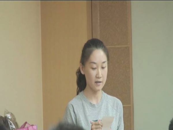 首先演讲的是“优秀学生干部”、“优秀毕业生”、中国科学院优秀博士生“朱李月华”冠名奖、中科院声学所所长择优基金、中科院研究生院创新科研类资助获得者,来自超声物理与探测实验室的崔寒茵博士师姐。作为打头阵的先锋,师姐送给大家4点。第一,要敢想敢做,想法比自己的能力稍微高出一点作为你的目标,达到了会很有满足感,否则也不会太难受。师姐举了个最近对自己很满意的例子,就是在工作未确定的情况下参加一次在国内召开的ieee的会议,如何尝试把自己推销出去的经历。还嫌不够代表性,师姐进一步鼓励大家勇于申请基金和奖学金,不要轻言放弃,努力把握才有机会嘛。送一句师姐喜欢的话给大家吧,“伸手摘星,未必如愿,但不会弄脏你的手”!(笑声)第二,做事要有计划。虽然很多时候是摸着石头过河,还是尽量向那些一步一步安排的非常好的师兄师姐学习。师姐充满关切的寄语师弟师妹,最好从研一研二刚进来时就多思考一些未来的事情,找到自己的方向。第三,培养一些喜欢的兴趣爱好(没有的话就找个小朋友:),来克服研究所里略为枯燥的生活,在不顺心的时候有所排遣,维持一个不差的心态。第四,多运动。别的不说,大家拿来师兄师姐的照片,对比刚入所和现在的,可以发现大多是长胖了,从玉树临风的小伙子开始长起了小啤酒肚(笑声)。(掌声)五年的博士生涯,师姐自始至终以她甜美的微笑,带给大家美好乐观的心态。