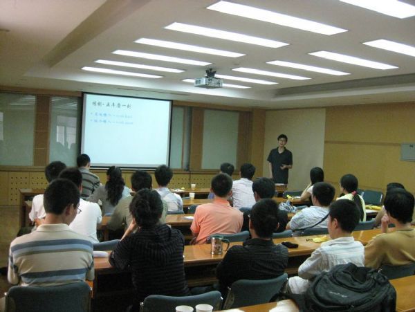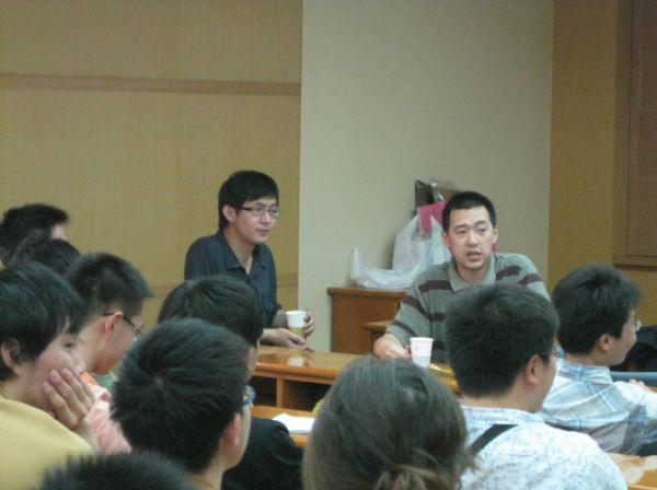 随后,吴晓的室友,来自数字系统集成部、去了船舶系统工程部的杨晓光博士师兄给大家上了一堂就业形势大讲堂。首先,最好找一个自己喜欢干的职业。第二个,看你能干什么。第三个,看你能忍受得了什么。例如投行,每天很亢奋,没有休息。当公务员,可能很烦,也可能没有太多灰色收入,但是最重要的是稳定。例如IBM,本身是个很大的国企,有很多辅助部门。所以大概分为几类,外企类、研发类、销售类、综合能力类。研究生院有个创业者的板块(EA),经常办讲座,鼓励大家常去参加其一些活动,例如“商业道德”、“事业起航”,Google或者摩托罗拉等企业回来参加。面不同的职位,简历也不同。如果想去商业界,也可以事先去学一些相关课程。