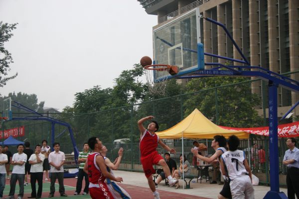 为庆祝建所45周年举办的系列活动——“中科海讯”杯篮球赛自从6月10号开赛以来就受到了广大职工和学生的关注,每场比赛都能吸引来众多的观众。经过一个星期激烈的小组赛和残酷的淘汰赛,网络新媒体和中科信利两支球队脱颖而出,于6月17号下午的决赛赛场上狭路相逢。