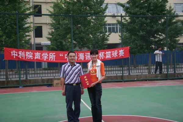 比赛结束后进行了简短的闭幕暨颁奖仪式,仪式由所工会主席倪宏主持。倪宏老师对本届比赛的参赛运功员、场下的啦啦队以及所有工作人员表示了感谢,他表示在大家的共同努力下本届比赛才能取得了巨大的成功。在随后进行的颁奖仪式上,首先由办公室副主任发强分别给本届比赛的最佳男运动员——来自海洋声学的朱正宜、最佳领队——来自医用声学的王玥以及最佳女运动员——同样来自海洋声学的汪玉玲颁发奖状;随后由办公室主任周秀霞给第三名机关联队和第二名中科信利颁奖;最后所工会主席倪宏为本届比赛的冠军球队颁发奖状和冠军奖杯。