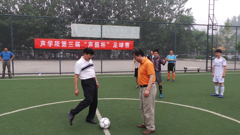 2013年6月28日,气温适宜,清爽舒适,由声学所工会和足球协会主办的第三届“声振杯”足球赛在中关村体育场举行了开幕式。