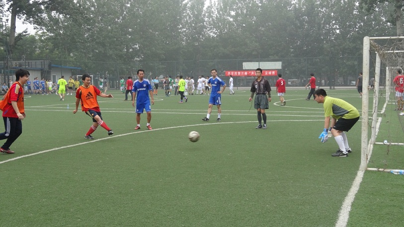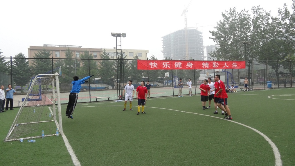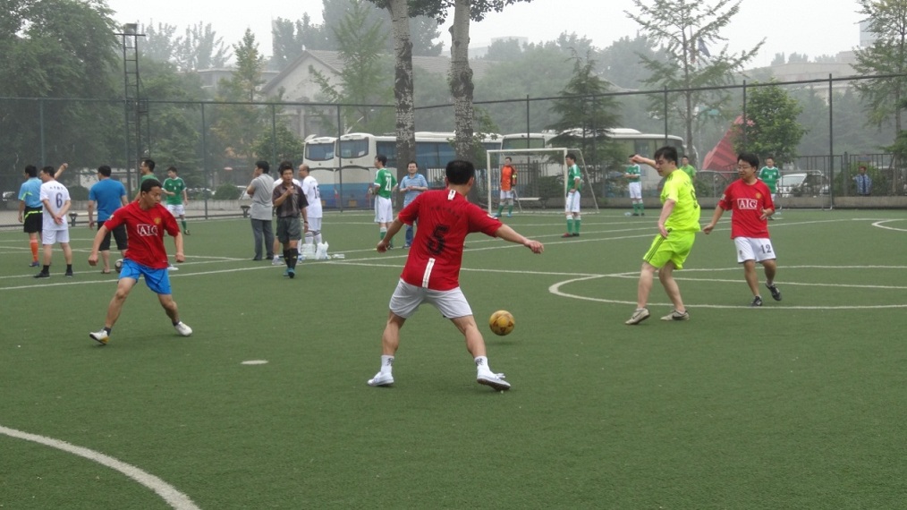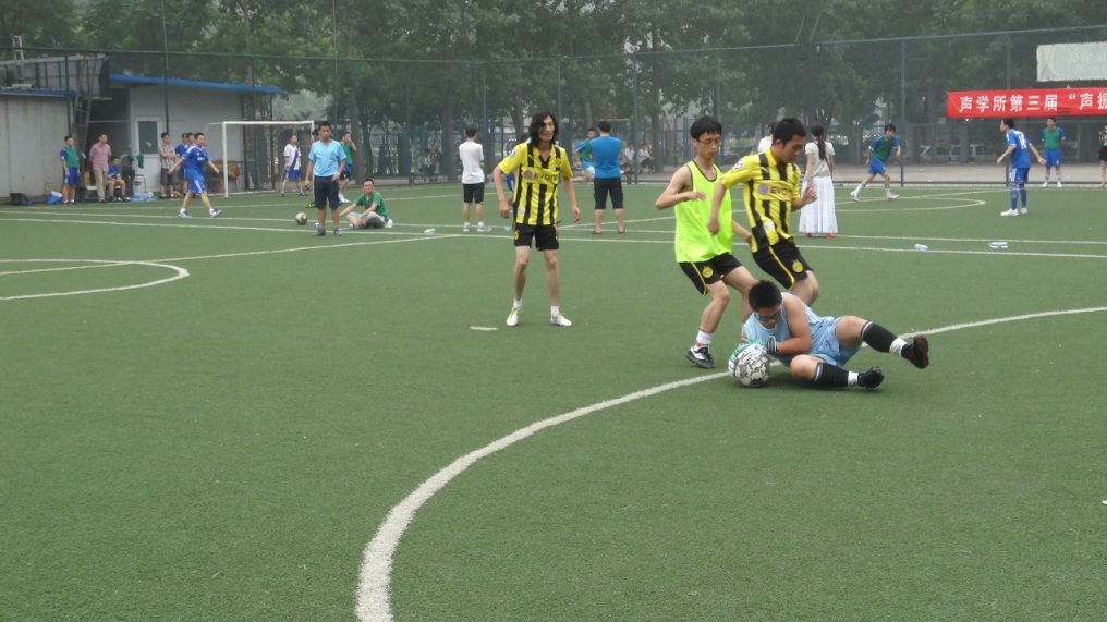2013年6月28日,气温适宜,清爽舒适,声学所第三届“声振杯”足球赛在中关村体育场举行了开幕式和揭幕战。首日进行了六场比赛。12:00到13:00同时进行的三场比赛是机关(A2)VS声纳工程(A4),噪声(B2)VS医用声学(B4),水声换能器(C2)VS通信声学(C4)。