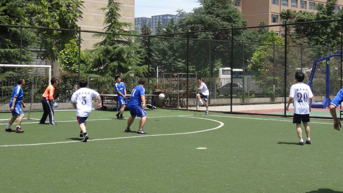 今天天气一扫前几日的阴霾,晴空万里,气温高达34度,这对队员的体能造成了极大地考验。水声换能器队和微机电队由于前两场均为两战全负,今天只能放手一搏,争夺小组第三,然后靠积分和净胜球赢得出线权。比赛一开场水声换能器队打出如潮水般的进攻,连续进球,上半场6:0领先。下半场由于双方体能下降,双方前场冲击力明显减弱,但水声换能器队还是在下半时攻入两球,最终8:0战胜微机电队。水声换能器队小组第三保留出线希望,微机电队无缘出线。