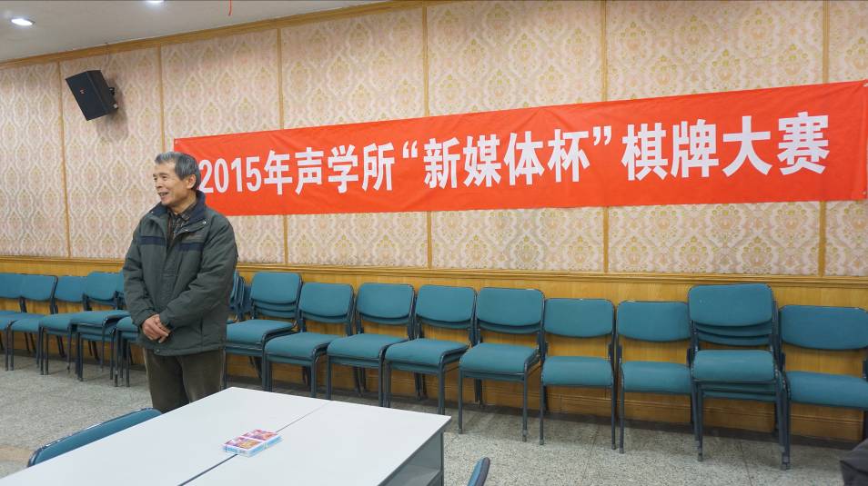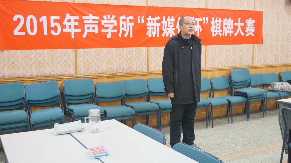 2015年12月4日,由声学所工会、声学所团委主办,国家网络新媒体工程技术研究中心赞助,声学所棋牌协会承办的一年一度的 “新媒体杯”棋牌赛在声学所DSP多功能厅隆重开幕。“新媒体杯”棋牌大赛为我所传统活动,本次比赛的主题是“快乐棋牌,快乐生活”,通过本次比赛希望选手们在繁忙的科研之余劳逸结合,增进交流,缓解工作压力,提高科研效率。本次比赛共有62个队伍,92人参加,其中升级30组,五子棋32组。大赛秉着友谊第一、比赛第二的理念,为大家提供了一个缓解工作和学习压力、促进相互间了解和友谊的环境。