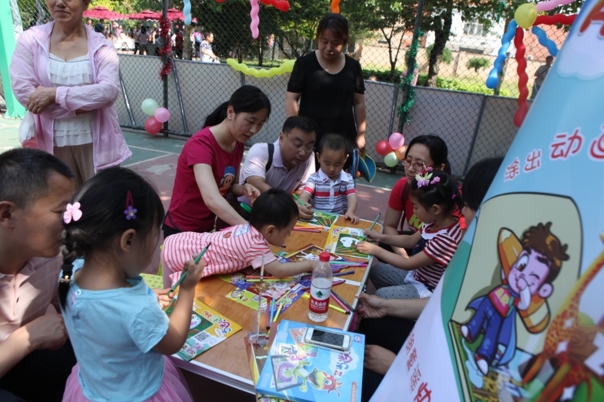 活动根据孩子们不同的年龄阶段和活动特点划分为0-3岁区域、4-6岁区域、7岁以上区域,设计了丰富多彩的节目和游戏:古筝演奏、爬行降落伞、捞鱼、投球、比比画画、跳绳比赛、金粉画等等。小朋友们尽情地游戏,园区里一片欢声笑语,平时宁静的声学所变成的欢乐的海洋。三个多小时的活动结束时,许多家长和孩子依然沉浸在欢乐之中,不舍离去。