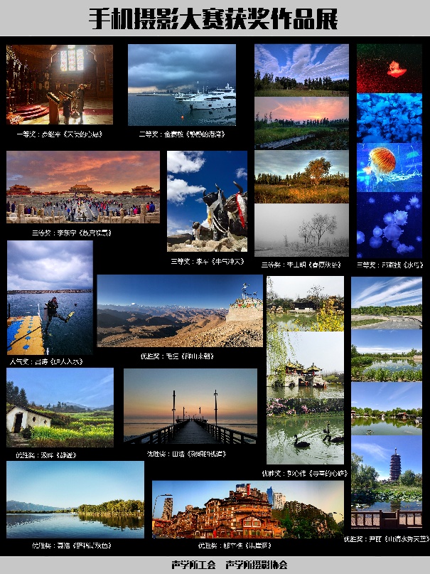 由声学所工会主办,声学所摄影协会承办的声学所第三届手机摄影大赛圆满落幕,此次手机摄影大赛共收到摄影作品150余幅,最后通过评委老师的打分及网络投票,选出一二三等奖及优胜奖若干名。