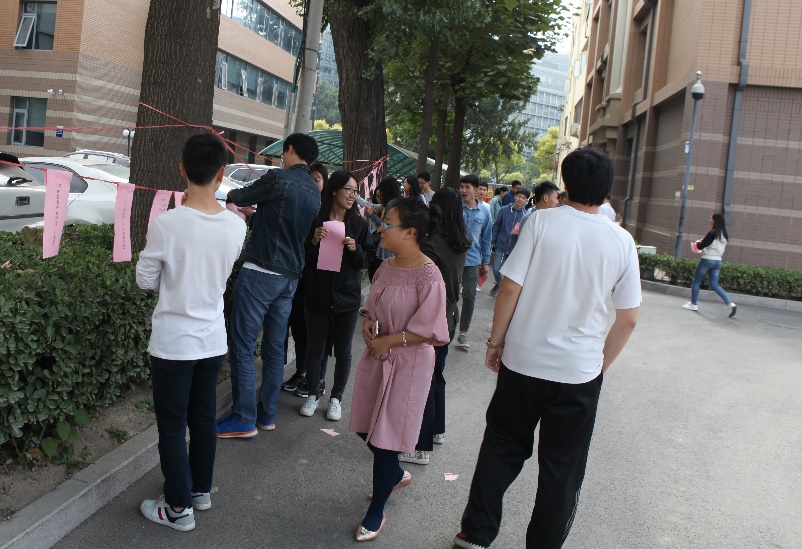猜灯谜活动激发了大家浓厚的兴趣和强烈的好奇心,350条灯谜汇集了传统文化、人文地理、科技前沿、党史文献、院所重大新闻等多方面的知识,极具挑战性和趣味性。大家纷纷按捺不住内心的小兴奋,小试身手,相继查看谜面,开动脑筋,争取以最快的速度挖掘谜面背后的答案,然后迫不及待的摘下已知答案的谜面,满意的走向兑奖处;有的虽然猜到了谜底,但并不急于兑奖,而是继续查看下面的谜面,享受着新的挑战所带来的快乐;还有的挠头不解,经高手一番点拨后恍然大悟。大家纷纷表示,通过这种科研之外的开动脑洞的方式,为紧张的学习生活增添了不少乐趣。