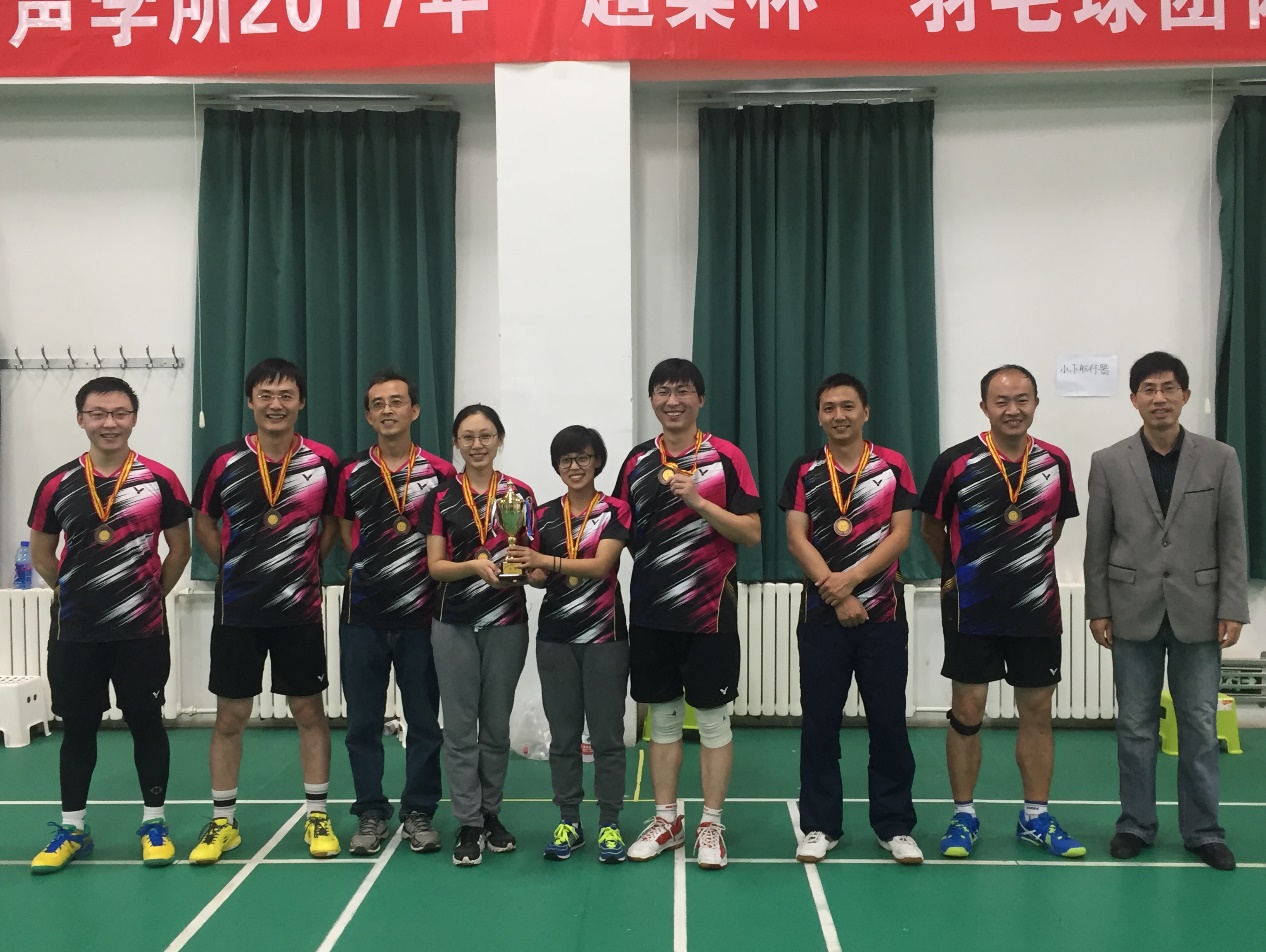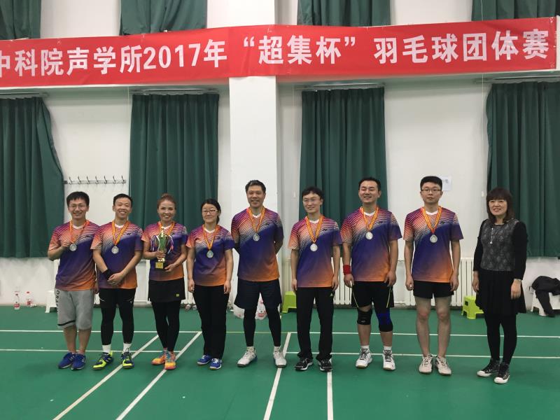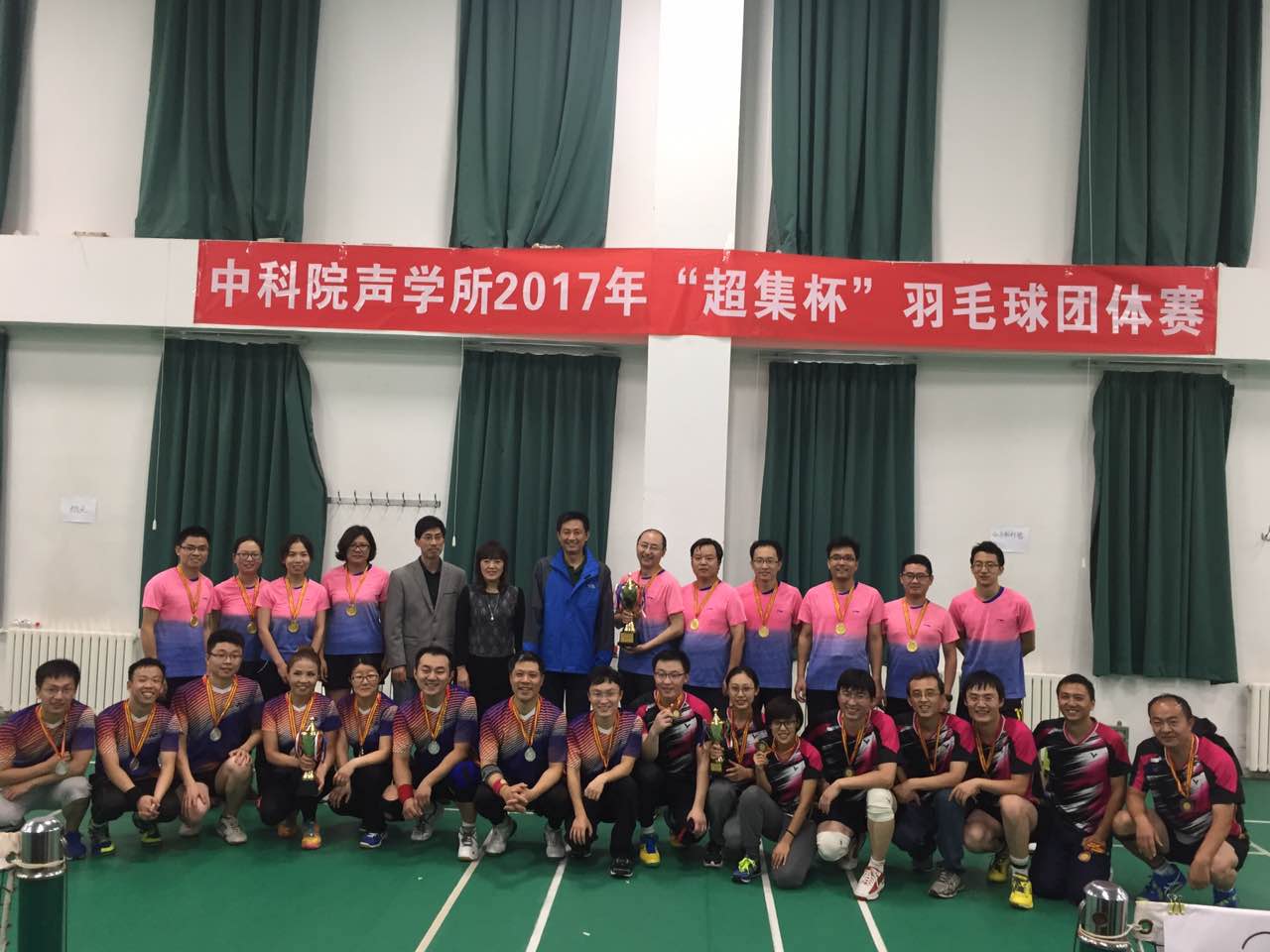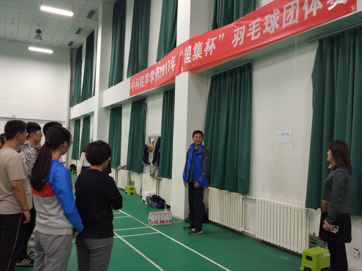为了进一步丰富声学所职工与学生的课余生活,促进体育爱好者间的交流。2017年10月22日,声学所2017年“超集杯”羽毛球团体赛在生态中心羽毛球馆举行,全所近100人参加了比赛。开幕式由羽毛球协会会长陈家熠主持。声学所党委书记张春华书记出席开幕式并致辞,声学所所务助理、工会常务副主席周秀霞等出席开幕式。经过一天的激烈角逐,声场声信息国家重点实验室代表队勇夺团体冠军。