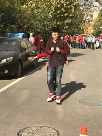 第二项比赛是双人背靠背夹球,要求两人在没有任何身体接触的情况下,背靠背夹球运送25米,这项比赛要求最难,也最具有技术含量,需要两人配合默契。网络新媒体分工会的张茹和杨奇峰同学相互合作参与了本次项目,比赛刚一开始,他们两人就迫不及待地向前迈步,然而由于两人第一次参与此次项目,相互间没有配合,刚走了几步就把球给掉了,二人赶紧把球拾起来又重新出发,这次他们吸取教训,缓步慢行,逐渐加速,随着节奏的适应,默契度的提高,他们一路小跑冲向了终点,在欢声笑语中完成了比赛。
