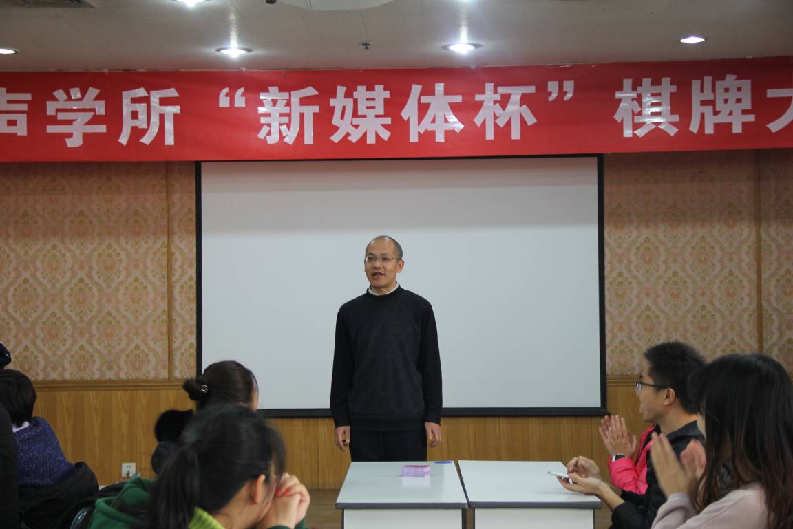 比赛开始前首先举行了棋牌大赛开幕仪式。工会主席林伟军致开幕辞,对大家的积极参与表示欢迎,对国家网络新媒体工程技术研究中心的大力支持以及棋牌协会的悉心组织表示感谢。