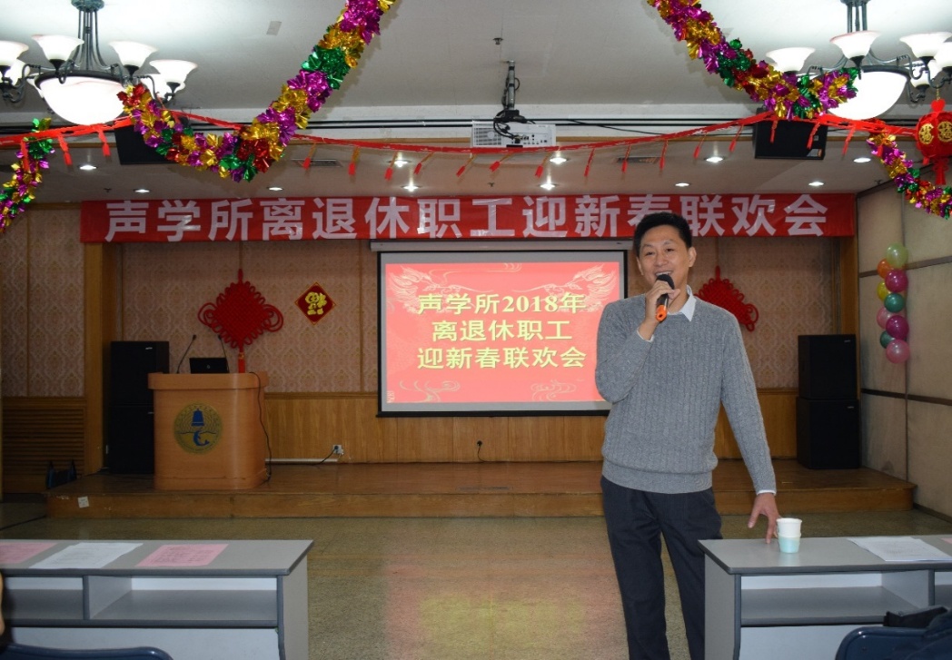 张春华介绍了声学所2017年在科研进展、学科建设、人才培养、保障条件建设等方面取得的令人欣喜的成绩,这一切离不开全所职工的努力和老同志们的关心和支持,并代表所领导班子向离退休老同志致以诚挚的节日问候。