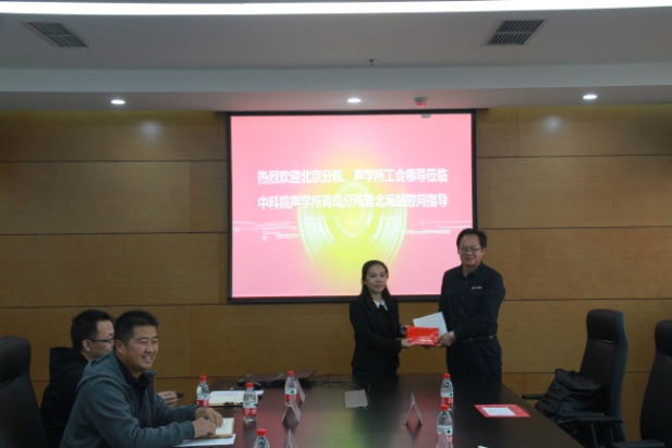 座谈会上,汪洪岩宣读了京区事业单位工会致北海站的慰问信,他指出,北海站的同志能够克服困难,脚踏实地,甘于奉献,为水声工程海上实验和应用声学研究提供了重要的技术支撑,为我国水声事业做出了重要贡献。安俊英就北海站的基本情况、工作进展、工会工作及发展规划等内容作了汇报。京区事业单位工会领导认真听取了汇报,充分肯定了北海站各方面工作,并就工会架构、日常工作、活动形式等内容进行了沟通交流。