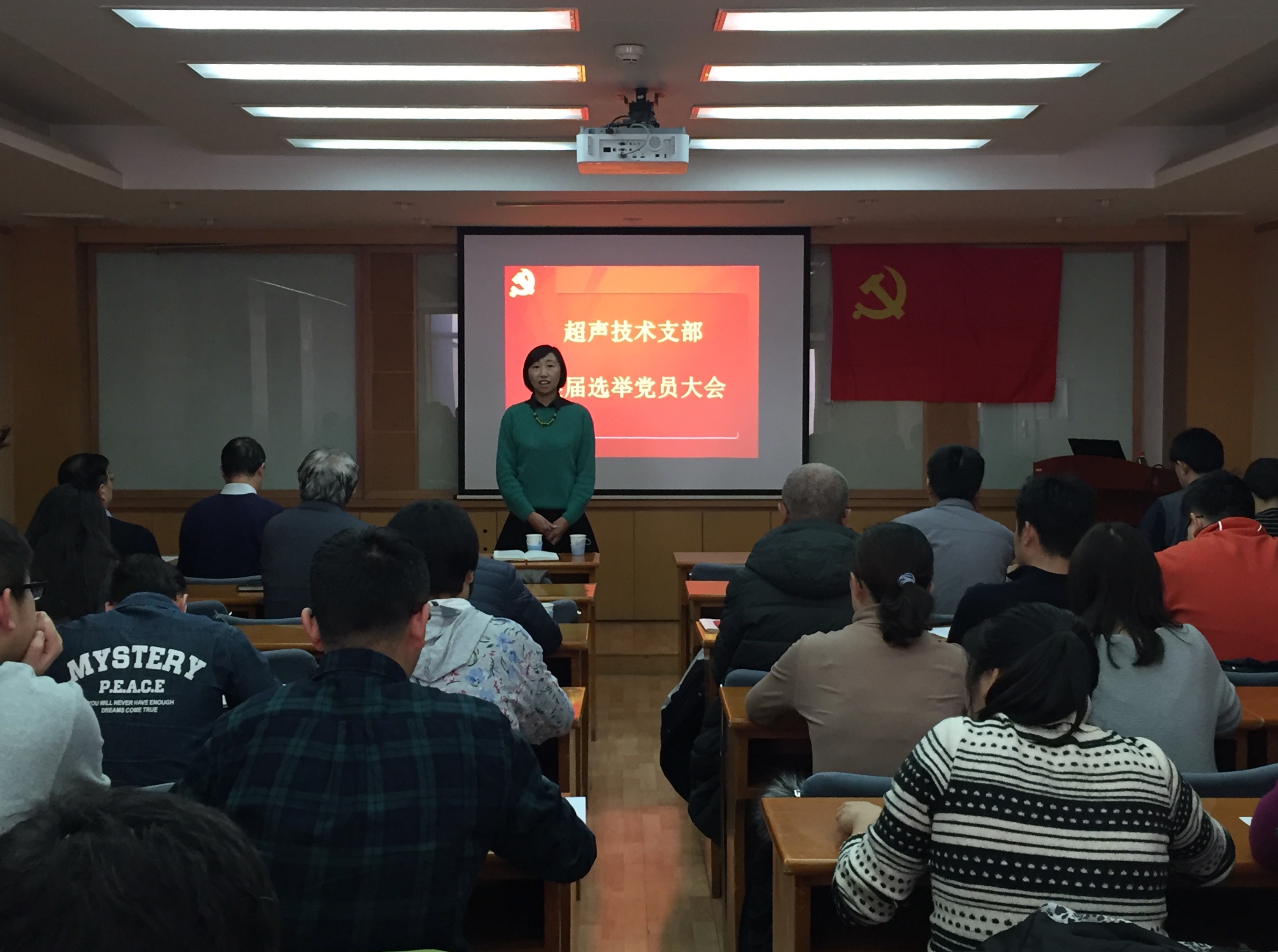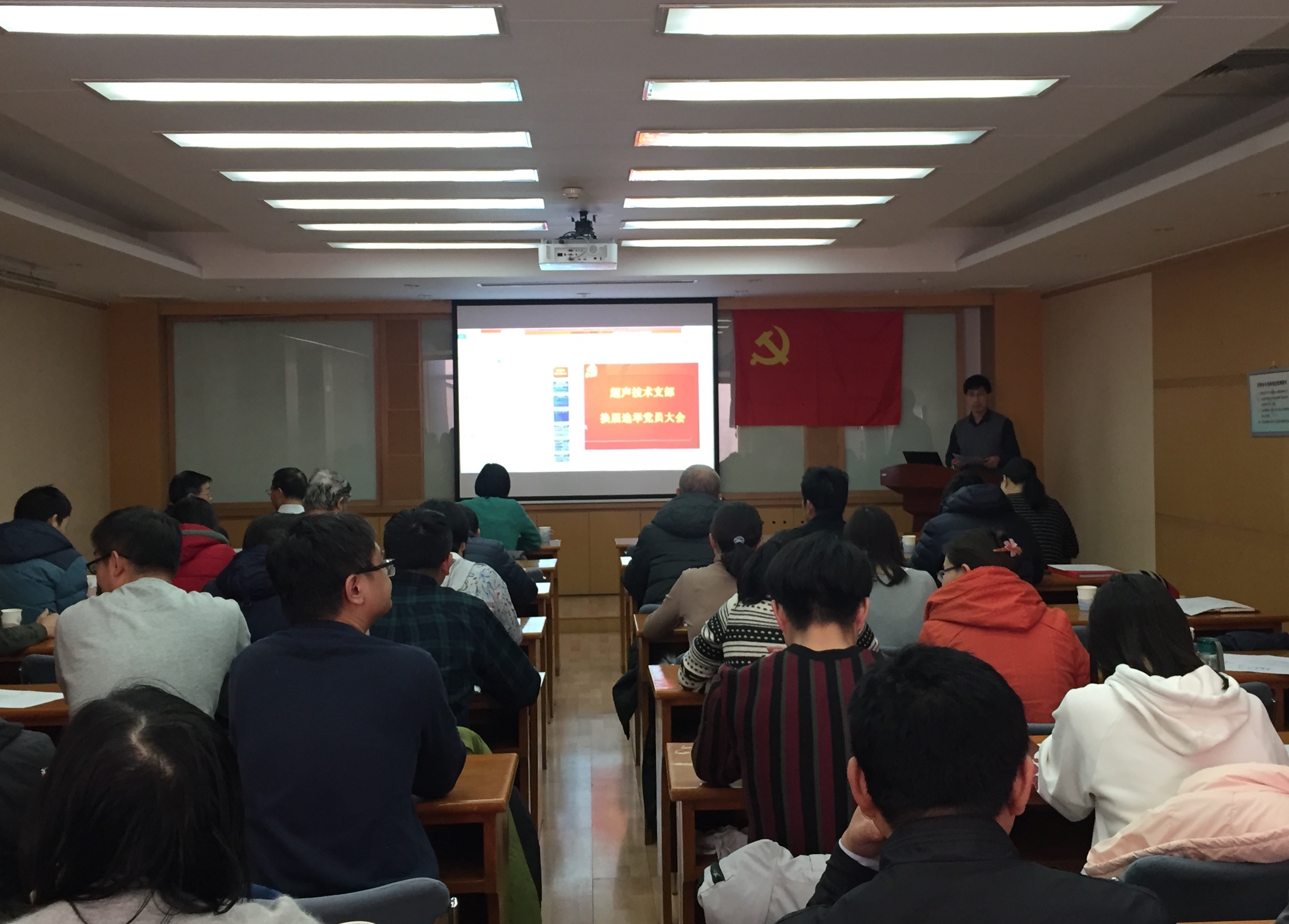 2018年12月19日下午,超声技术党支部在德昭楼218会议室召开党员大会,进行了换届选举和学习习近平总书记在庆祝改革开放40周年上的重要讲话。所党委副书记、纪委书记李浩然出席会议。所党委委员王小民所长、王秀明主任等70余名支部党员参加了会议,会议由上届党支部书记陈德华同志主持。