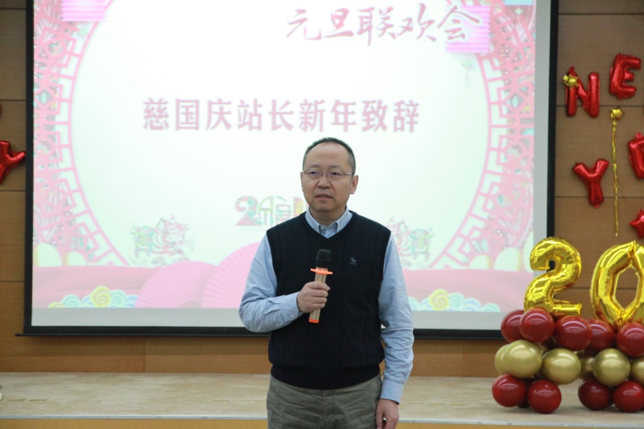 联欢会开始前,慈国庆站长发表新年致辞。慈站长表示,一年来,通过重大项目的组织实施和重大平台的提质增效,我们的发展实力得到显著增强;一年来,通过抓党建,推动规范化和组织文化建设再上新水平,我们的精气神得到明显提升;一年来,有9位新同志加入到我们的大家庭,为我们的发展注入勃勃生机。慈站长强调,任何成绩的取得都是一步一步干出来的,希望全体职工继续发挥开拓创新精神,脚踏实地,积极进取,在新的一年里工作事业节节高,取得更大的成绩。