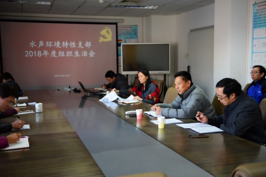 2019年2月20日,水声环境特性党支部在声学所德昭北楼416会议室组织召开2018年度组织生活会及民主评议党员工作。本次组织生活会的主题是:强化创新理论武装,树牢“四个意识”、坚定“四个自信”,坚决做到“两个维护”,争做新时代合格党员,为实现“四个率先”目标,建成世界科技强国做贡献。所党委书记张春华、党委办公室主任刘宏伟出席了会议。