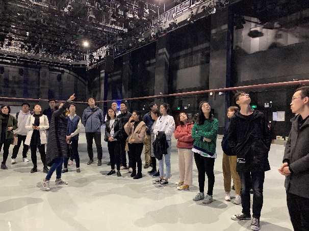 随后,同学们参观了亚洲首个大学里的4K演播室。这个演播室占地1400平米,连同导播间及附属设施几乎占据了整个教学楼。信号处理方向的同学看到复杂的调音台甚是激动,发出感慨:“做实验时,我们只是把振动的物理量转化为电信号,而他们把舞台的各路信号转化成节目的音频,看着相类却别有天地。虽然处理的都是声学信号,但由于应用不同,设计的思路便大相径庭。”