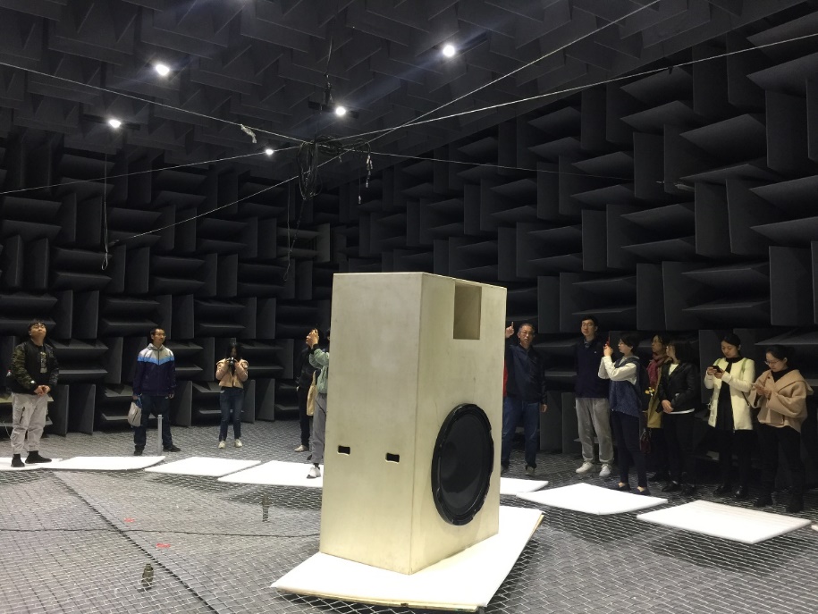 在中国传媒大学孟子厚老师和北京声学学会朱亦丹老师的热情带领下,同学们先后参观了录音系录音棚、学校电视台、传播声学研究所声学实验室以及艺术教育中心排练厅。
