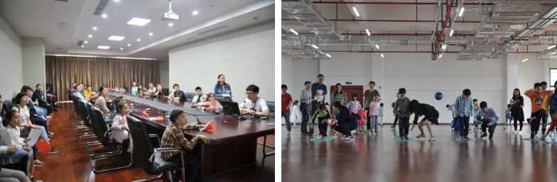 在声学互动游戏区,设置了“听声识别”“跑圈折返”等互动游戏,家长与小朋友热情高涨。各组家庭团结协作,努力奋进,着实趣味十足,笑声不断。通过游戏,既让大小朋友们学到了游戏中的声学知识点,也增强了家庭成员间的默契。