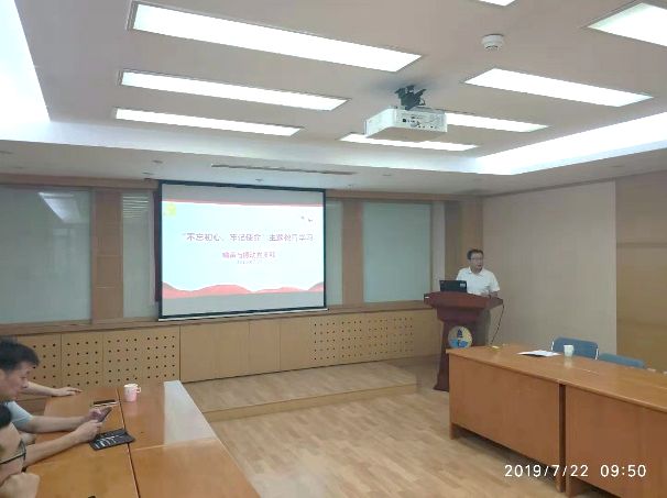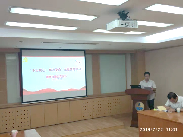 2019年7月22日,噪声与振动党支部在德昭楼218会议室召开“不忘初心、牢记使命”主题教育专题学习会,会议由党支部书记白国锋同志主持。