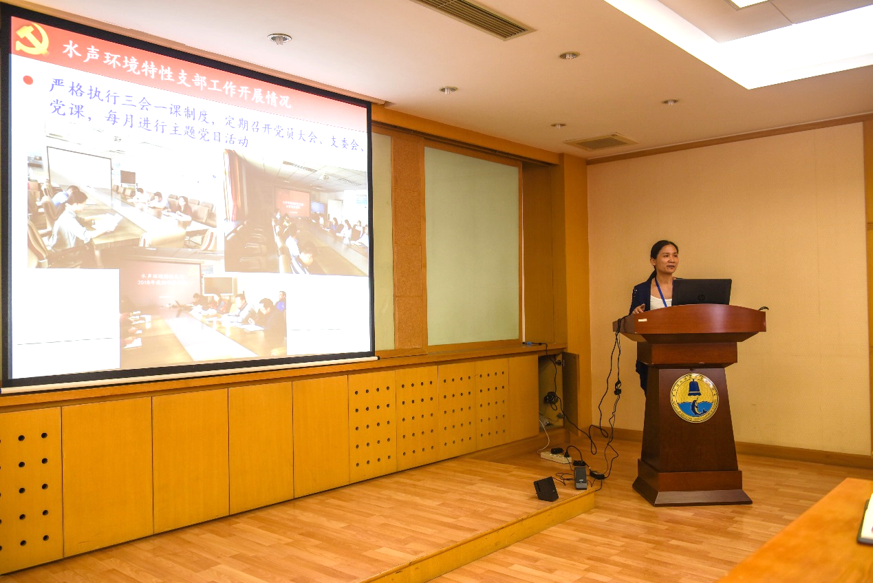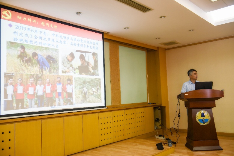 会上,两位支部书记分别介绍了支部概况以及2019年度上半年以来的党建工作情况。其中噪声与振动党支部参与开展的赴张家口贫困村的扶贫活动以及开展慰问外场试验工作人员的活动令人印象深刻;水声环境特性党支部开展的祭扫李大钊先生墓的活动以及按月举行的青年学术交流活动也颇具特色。