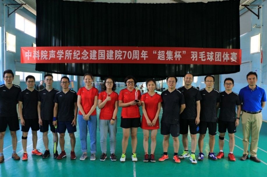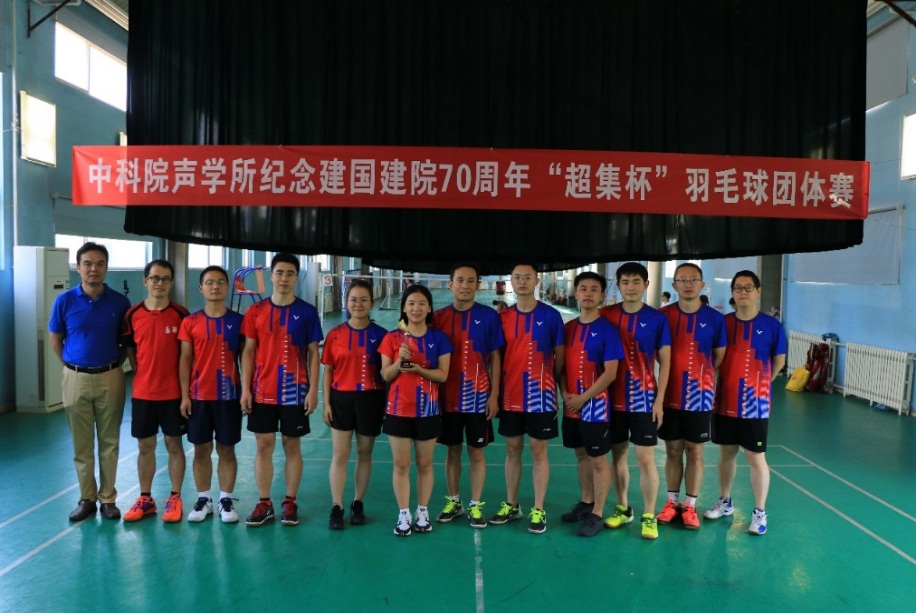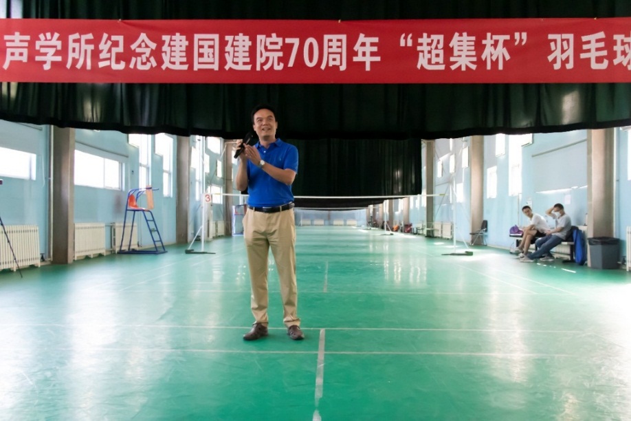 为纪念建国建院70周年,进一步丰富声学所职工与学生的业余生活,促进体育爱好者间的沟通与交流,2019年9月7日,声学所2019年“超集杯”羽毛球团体赛在中关村文化体育中心羽毛球馆举行。开幕式由声学所羽毛球协会会长刘松主持。声学所工会主席林伟军主席,所务助理、工会常务副主席周秀霞,院水下航行器重点实验室副主任王东辉和超声技术中心副主任陈德华出席了开幕式。王东辉和陈德华代表冠名单位讲话,林伟军为本届“超集杯”羽毛球比赛致开幕词并为比赛挥拍开球。