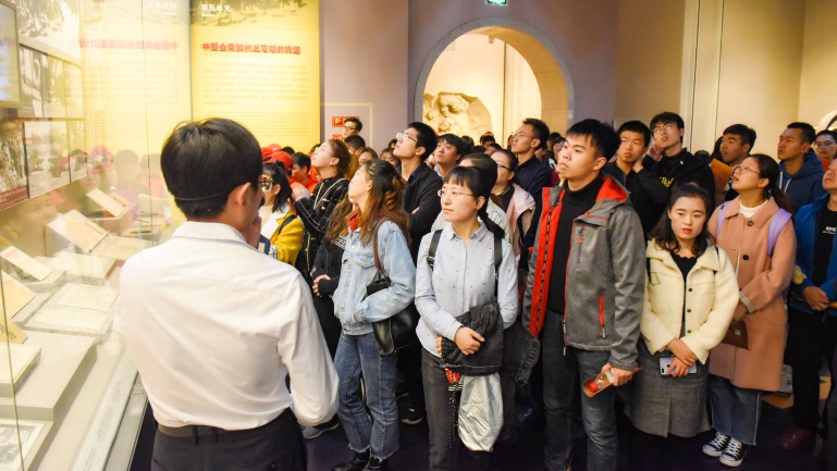 跨过卢沟桥,穿过宛平城的城门,大家来到中国人民抗日战争纪念馆,纪念馆以"伟大胜利"为主题,共分八个部分,全面再现了中国人民14年浴血抗战的历史画卷。在第一部分展厅,大家共同回顾1931年九一八事变,面对日本帝国主义为实现独占东北,进而灭亡中国的阴谋,中国共产党领导东北抗日联军进行了艰苦卓绝的抗日斗争,拉开了世界反法西斯战争的序幕。接着,大家回顾了1937年七七事变,在中国共产党的推动下,以国共两党合作为基础的抗日民族统一战线正式形成。大家共同学习毛泽东提出的《论持久战》,《论持久战》是夺取抗战胜利的重要法宝,也是反法西斯战争的致胜理论。随后,大家回顾了侵华战争中日本对中国人民进行惨无人道的屠杀、迫害和摧残的屈辱历史。日本在中国掠夺资源,在占领区实行殖民统治,犯下了罄竹难书的累累罪行,在现代文明史上留下了最黑暗的一页。同志们庄严默哀,铭记历史。