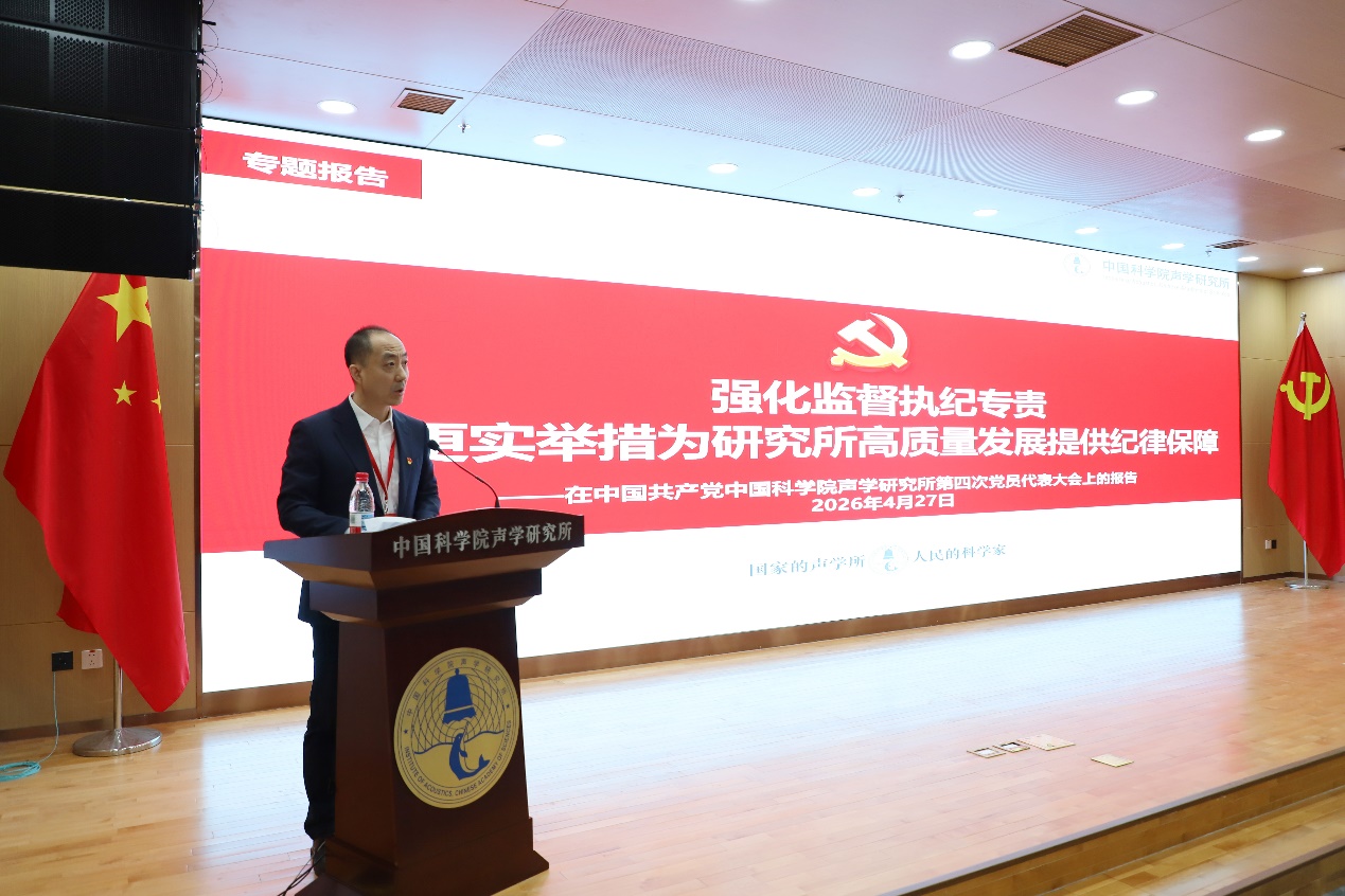 2026年4月27日上午,中国共产党中国科学院声学研究所第四次代表大会隆重召开。会议听取并审议通过了第三届党委和纪委工作报告,选举产生了新一届中国共产党中国科学院声学研究所委员会和纪律检查委员会。