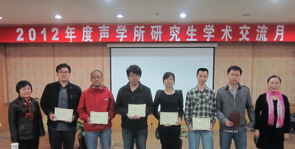 最后,还举行了颁奖仪式,对获奖同学进行了表彰。至此,2012年度声学所研究生、博士后所级层面学术交流月活动圆满落下帷幕。