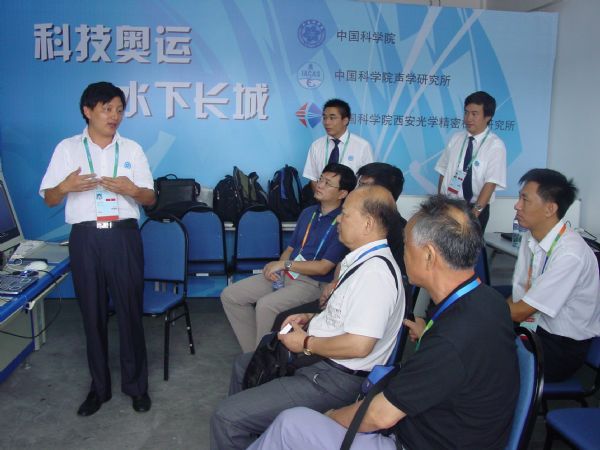 这次测试赛使用的水下安保系统是由声学所为总体单位,声学所和西安光学精密机械研究所联合研制完成的。早在今年4月3日,院高技术局和奥帆委在青岛签署了《2007青岛国际帆船赛、第29届奥林匹克运动会及残奥会帆船比赛水下安保系统合作协议》。根据协议的要求,在“2007青岛国际帆船赛”比赛期间,中国科学院声学研究所和中国科学院西安光学精密机械研究所利用其研制完成的“水下安保系统”对比赛用港池进行了水下监控和扫测,承担比赛港池的水下安保任务。