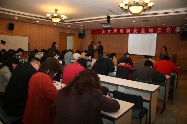 11月9日下午2时,消防安全知识竞赛正式开始,来自全所各实验室及机关各处、物业公司等25个部门的44名代表参加了比赛。试题分为单项选择、判断题、多项选择和消防安全标识识别四种题型。经过紧张激烈的角逐,水声换能器与测试技术实验室潘耀宗获得第一名,科技处邢宇、财务处王萌萌获和声场声信息国家重点实验室任云、微弱信号检测与处理实验室马雪洁、超声物理与探测实验室苏畅分别取得二、三名的好成绩。