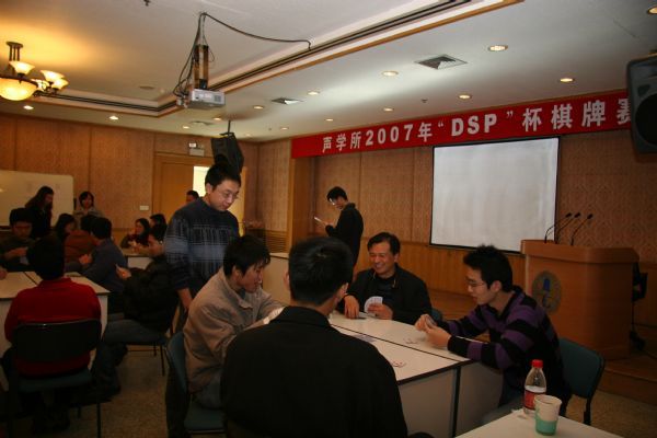 为丰富所内广大职工与研究生的业余生活,缓解科研工作压力,活跃气氛,加强交流,由所团委和研究生会、工会共同发起,由我所网络与新媒体技术研究中心(DSP中心)赞助的2007年“DSP”杯棋牌系列比赛之——“拖拉机”(升级)大赛在一片掌声和欢呼声中圆满落下帷幕。本次比赛得到了我所广大职工和研究生的热情参与,比赛分四人组和六人组两个赛组,四人组共有26个队报名,六人组有10队报名,另外加上梦之队和DSP队,总共80多人参加了此次棋牌比赛。