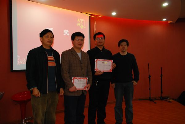 为了表彰先进,室里首次设置了实验室内部的单项奖,其中“项目进展奖”、“优秀学生奖”由室学术委员会讨论评选确定;现场通过投票选举产生了“先进工作者”、“最佳新人奖”、“热爱集体奖”。值得一提的是“出差大王奖”由2007年度累积出差时间达171天的徐亚军获得,将近半年的时间出差在外,的确是非常辛苦。实验室将特别设立的“杰出贡献奖”授予了魏建江老师和刘桂兰老师,感谢两位实验室的元老多年来为室里作出的无私奉献。