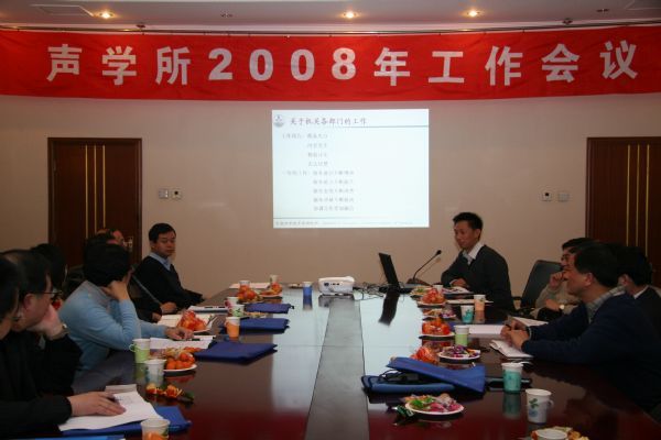 2008年1月25-27日,声学所在北京召开了2008年工作会议。所长田静、副所长张春华、潘锋、居琦、党委副书记王小民等所党政领导班子成员和研究部正副主任、研究室主任、机关职能部门正副处长以及京外“三站一中心”主要领导共50余人参加了会议。张春华副所长代表领导班子作了年度工作报告,田静所长发表重要讲话。