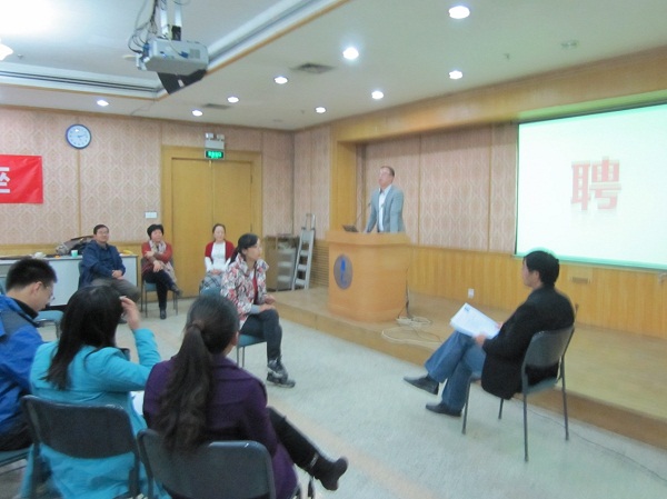 15:00讲座开始,刘卫华处长代表所里的领导向2012届毕业生表达了对他们找工作的支持和鼓励,希望他们都能顺利就业,满意就业。之后由嘉宾开始了讲座的相关内容。一、职场微访谈;二、职场对对碰;三、现场职通车。