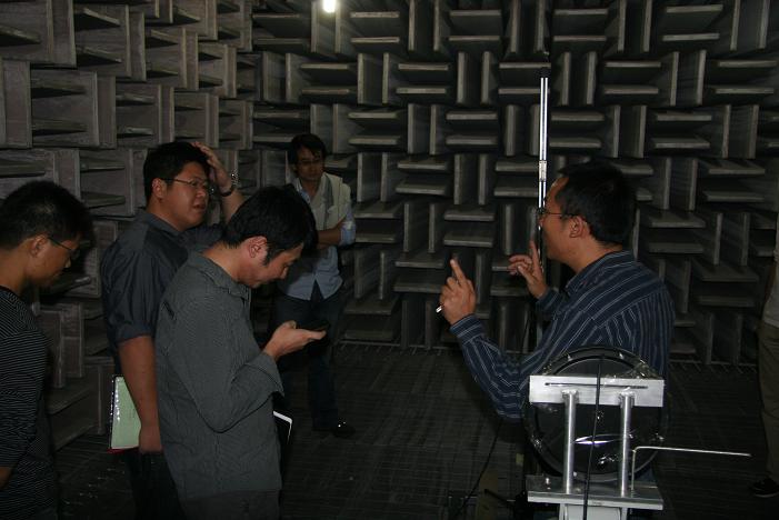 为使新职工们更加直观地感受到声学所先进完备的科研环境,本次培训组织了重点实验室参观活动。在水声换能器与测试技术实验室,大家对水池产生了浓厚的兴趣,详细询问了水池和尖劈消声的工作原理,吴本玉老师都详细做了解答。接下来,尹瑶老师带领大家依次参观了噪声与振动重点实验室的全消声、混响和发响实验室。在每一处,老师耐心讲解着各个试验器材的工作原理和应用方法,使大家在开阔眼界的同时进一步领略了声学世界的奥秘。