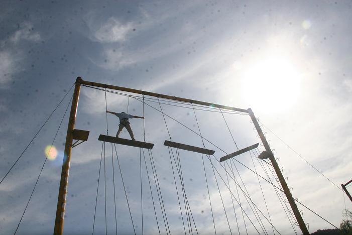 周末的拓展训练在昌平的专业基地进行,秋高气爽,景色宜人,在培训师的引导下,大家集思广益、精诚合作,用最快的时间完成了团队组建。“神马”队员热情干练,“蛟龙”队员睿智自信,两队都用不可思议的速度完成了“合力跨桥”、“信任背摔”、“目标市场”、“海难逃生”等充满挑战的项目。“合力跨桥”中,桥下紧抓缆绳的队员们仰望天空呐喊着,用力稳住浮木,协助“队友”一个个地跨越高空中的鸿沟;“目标市场”中,组长与组员们通力合作,每个人尽职得扮演着自己的角色,用智慧和团结合力创造速度的记录;“海难逃生”中,墙下的队员默默无闻地甘做人梯,墙上的队员奋力拼搏,将队友们一个个地送到高耸的“船头”之上…在每个项目后,大家都围成一圈进行了心得共享。大家都意识到这些项目看似简单,但依靠个人的力量根本完成不了,需要项目开始之前进行彼此良好的沟通,建立起充分的信任,在行动中分工明确,通力合作,依靠集体的智慧和个人的信念跨越一个个鸿沟、达成一个个目标。在拓展总结会上,大家仍然没有从激烈的团队项目中走出来,难以抑制的兴奋感和成就感打消了疲惫,之前略显内向的新员工也积极做了感言分享,大家对于自我潜能挖掘和团队协作精神都有了更为深刻的感悟,相信项目经历中一幕幕感人的场景必将激励新员工们在今后的团队工作中取得佳绩。