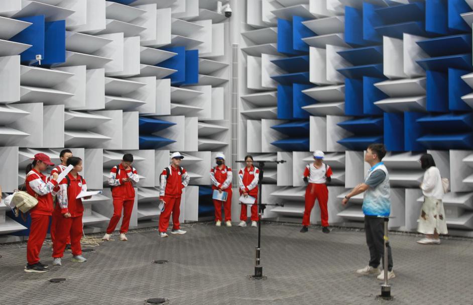 科普志愿者首先开讲《走进声学》科普课,帮助大家系统了解声学基础知识、应用领域及实验环境。随后,同学们实地参观了水声学与空气声学实验室,体验了《探索声音衰减规律》、《声音驻波“现身”》、《隔音材料探秘》、《声呐测深》、《换能器制作》等特色实践课程。课后,学生们分组制作PPT进行分享,通过模拟课程答辩和讲师提问指导的方式,对所学课程进行深入巩固。