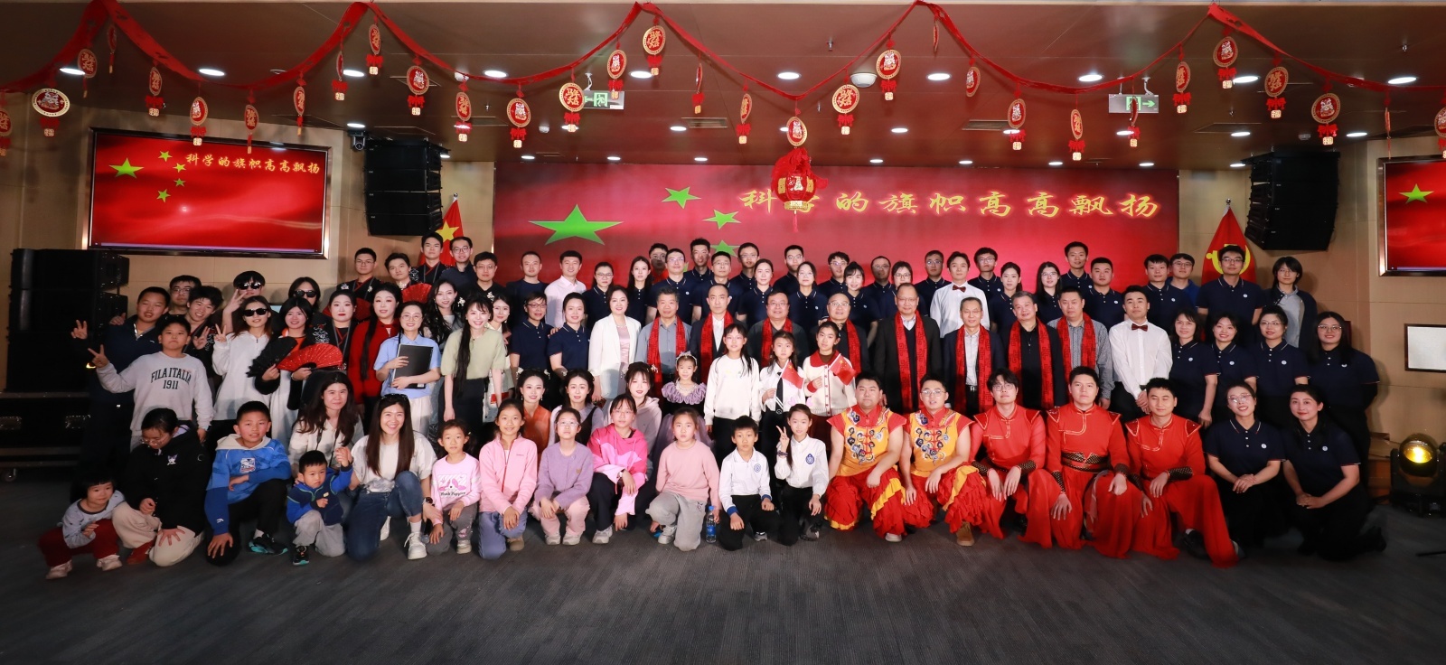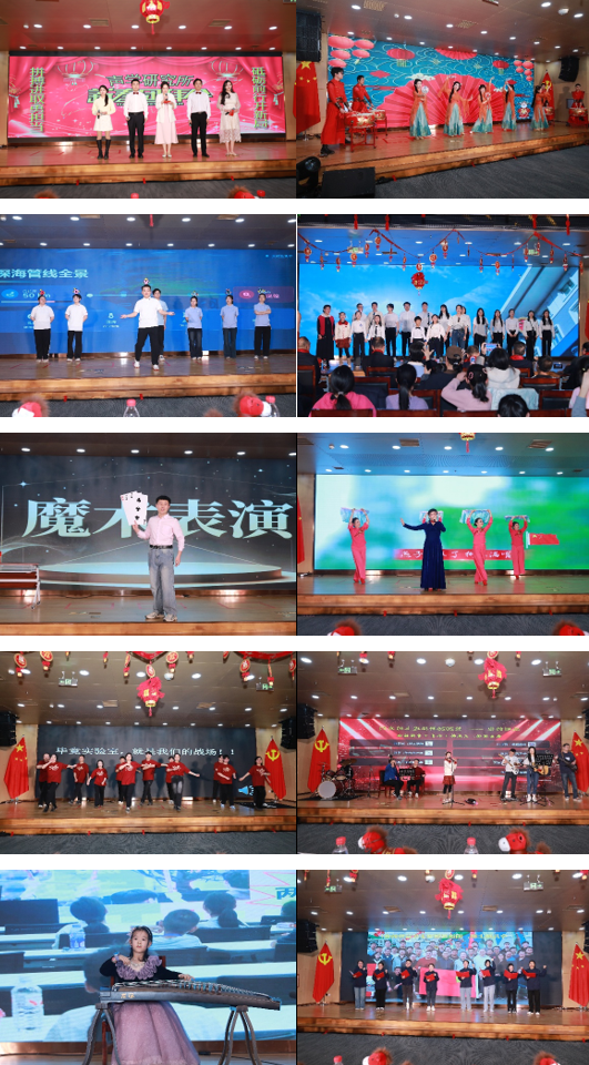情景剧《智领深蓝:远征路上拓心声》带领大家重温那些在拼搏岁月里,团队协作、攻坚克难的动人片段;《我爱你中国》,三代声学所人深情合唱,展示了我们向海图强的底气;魔术《三张牌游戏》带我们见证奇迹的时刻;独唱伴舞《春风十万里》中用青春浇灌声学事业的离退休同志们,传递新春的喜悦;创意舞台剧《大实验室是我的主场》展现科研人的青春与担当;抢点乐队用国乐雅韵邂逅经典旋律,奏响别样华章;“声二代”小朋友以古筝独奏《萱草花》展现了家属在背后的坚守与陪伴;诗朗诵《海上豪情:问鼎深蓝志》诉说着声学所人从拼搏中凝练的壮志与豪迈宣言;独唱《江声浩荡:滚滚前行志不休》传递着我们坚守初心、深耕领域的从容与担当;舞蹈《赤扇红驹:声韵长驰》以扇舞武韵演绎奋进之姿,再现2025年重大项目攻关足迹;诙谐剧《科研人的年终总结》解锁科研人的趣味图鉴;最后,团拜会在气势恢宏的大合唱《科学旗帜高高飘扬》中落下帷幕。