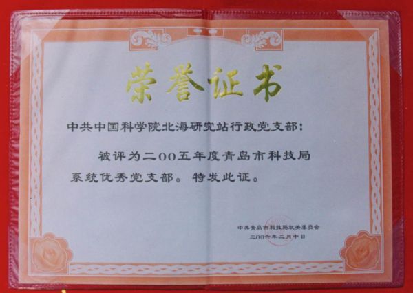 中共北海站行政党支部被评为2005年度青岛市科技局先进党支部