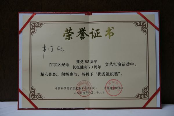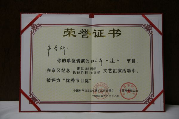 声学所在中科院(京区)纪念建党85周年和红军长征胜利70周年文艺汇演中获奖