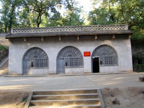 大礼堂的侧面山坡上,散布着一些普通的陕北土窑,这是当年毛泽东,周恩来,朱德等老一辈革命家的住处兼办公的地方,那朴实的窑洞和小小的院落,那简陋的生活和办公用品,让我们可以想见当年战争条件的艰苦。当年的大生产是艰苦奋斗的自救运动,周总理和朱老总也真的盘着腿学会了纺线线。就是在这样的木桌上,诞生了毛泽东思想的许多辉煌篇章。