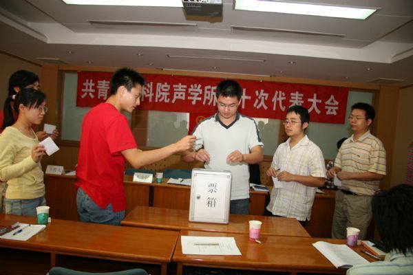 根据院团字2006(10)号文件的批复精神,声学所于2006年9月26日召开了第十次团员代表大会,听取了第九届团委书记徐震所做的工作报告,选举产生了第十届团委委员。
