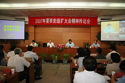 中科院党组2007年夏季党组扩大会议于7月16日至20日召开。会议以邓小平理论、“三个代表”重要思想和科学发展观为指导,深入学习贯彻十六届六中全会精神,以建设改革创新和谐奋进的中国科学院为主题,突出重点,狠抓落实,扎实推进院已出台的各项改革发展举措的实施,扎实推进研究所的改革发展,扎实推进1+10科技创新基地建设,深入研究并加快部署重大科技创新项目及相应的政策措施,部署2007年下半年重点工作。