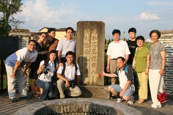 在瑞金逗留期间,代表团参观了叶坪与沙洲坝革命遗址。“红色故都”瑞金是中华苏维埃共和国的首府,1930年底到1931年9月,毛泽东和朱德指挥根据地军民粉碎了敌人第一、二、三次“围剿”,在叶坪村建立、发展和巩固中央革命根据地。1931年11月7-20日,在此召开第一次中华苏维埃共和国工农兵代表大会,通过了《宪法大纲》、《劳动法》、《土地法》及经济政策等重要决议,宣告中华苏维埃共和国成立,毛泽东为主席,“毛主席”的称呼即由此而来。叶坪村的革命遗址有毛泽东和朱德旧居、中央工农民主政府旧址、红军检阅台、红军战士纪念塔、公略亭、博生堡等。 1933年4月至1934年7月,由于叶坪村的暴露,中央工农民主政府从叶坪迁到沙洲坝办公,代表团参观了中央政府大礼堂、红井(沙洲坝前水塘边,井旁立碑“吃水不忘挖井人”) 等遗址。 ![]() 红井旁留影 ![]() 在苏维埃政府大礼堂前合影 离开瑞金后,代表团又奔赴革命圣地井冈山。井冈山位于湘赣边界的罗霄山脉中段,山势高大,主要山峰海拔都在千米以上,而且森林覆盖率很高。由于山高林密,地势险峻,1927年秋,毛泽东、朱德等共产党人率领中国工农红军,在这里创建了第一个农村革命根据地,为中国革命开辟了一条农村包围城市的道路,因而井冈山被称为“革命摇篮”。山中现存有30多处革命遗址,代表团参观了革命博物馆、挑粮小道、黄洋界战斗遗址、红军营房、红军造币厂、毛主席和朱德同志旧居、红军第四军医院等革命遗址,观看了“飞流直下三千尺”的飞龙瀑;并在北山烈士陵园进行了敬献花圈的仪式,王书记发表了即兴讲话,勉励大家把参观学习中的感悟与心得带回到声学所,化作工作和学习的动力。