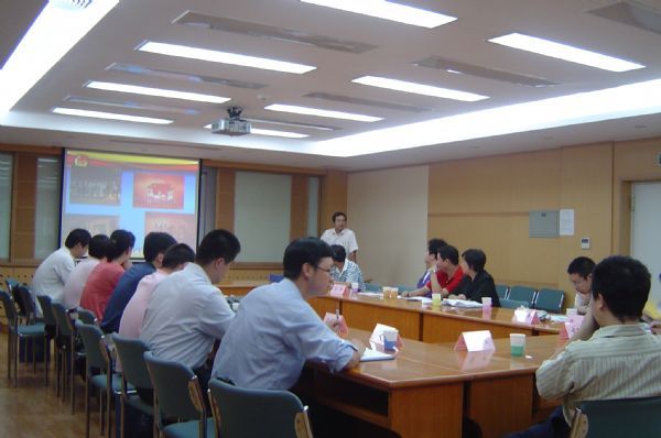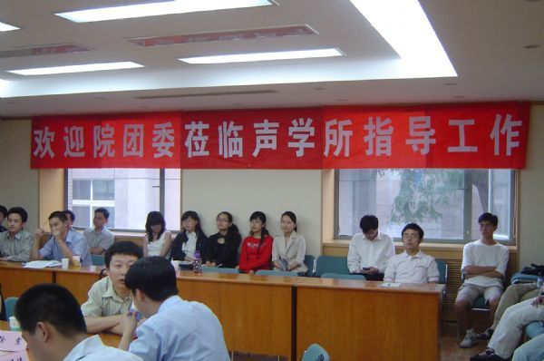 院团委书记、院办公厅秘书处处长胥伟华同志主持调研会。首先由所团委书记张云鹏做“乐观进取,务实求新——充分发挥团员青年模范作用”的专题报告。报告中介绍了声学所团委的组成、工作方式、指导思想以及团队建设等基本情况,我所团委的主要任务是“紧紧围绕三期创新工作,针对青年学生需求的多元化、个性化趋势,主动开展思想教育工作,开展各项文体活动,开展心理健康教育和咨询活动,努力满足团员青年日益增长的新需求凝聚团员青年人心,增强他们的投身知识创新工程的使命感和责任感,为培养充满活力的科技人才队伍,促进研究所的健康发展作出不懈贡献”;从思想教育、精神文化、体育健身三个方面介绍了新一届声学所团委所组织的各种各样活动,如毕业生座谈会、观看《南京》爱国教育主题团日活动、羽毛球比赛,篮球比赛,乒乓球比赛,卡拉OK比赛等以及团拜会声学所独具特色的品牌活动,如“和谐声学所,我爱我家”系列活动等;报告中提到声学所团委配合院团委开展的各种活动,例如无锡创业园宣传活动,青年BLOG大赛,青年创业大赛等活动;声学所团委通过组织了各种各样丰富多彩的活动也取得了很大的成绩,得到了所领导和相关部门的认可,通过开展各种活动使广大青年感觉找到组织了,研究生们感觉到团学结合更紧密了,上级团组织在关键时候能想到声学所了;报告最后结合声学所2007年“潜心,2007”的工作主题,介绍了声学所团委下一阶段的工作方向:围绕中心工作,营造和谐声学所;通过进一步提升活动层次不断提高研究生心理素质,提升年青科研人员身体素质;并继续推进爱所爱家系列活动等品牌活动的建设。